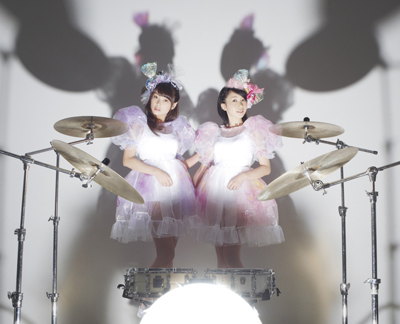 ツインドラムあいどる「バンドじゃないもん!」は、みさこ・かっちゃんの2人組アイドルユニット。ステージ上に2組のドラムがセットされ、ツインボーカル・ツインドラムで歌っている。