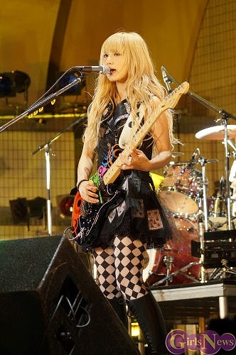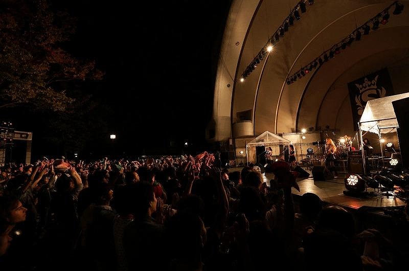 9月27日、4人組ガールズバンド SCANDALが4thアルバム「Queens are trumps-切り札はクイーン-」(EPIC RECORDS)発売記念LIVEを代々木公園野外ステージで行った。今にも降りそうな曇天の下、彼女たちの生のライブを見るために1万2000人のファンが会場に駆け付けた。