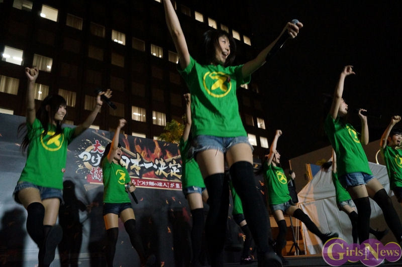 そして「TSUKEMEN☆LOVE~大つけ麺博のテーマ~」を熱唱。周囲からつけ麺のスープの匂いが漂ってくる中、ラストは新曲「つけ麺☆OMD」を熱唱。