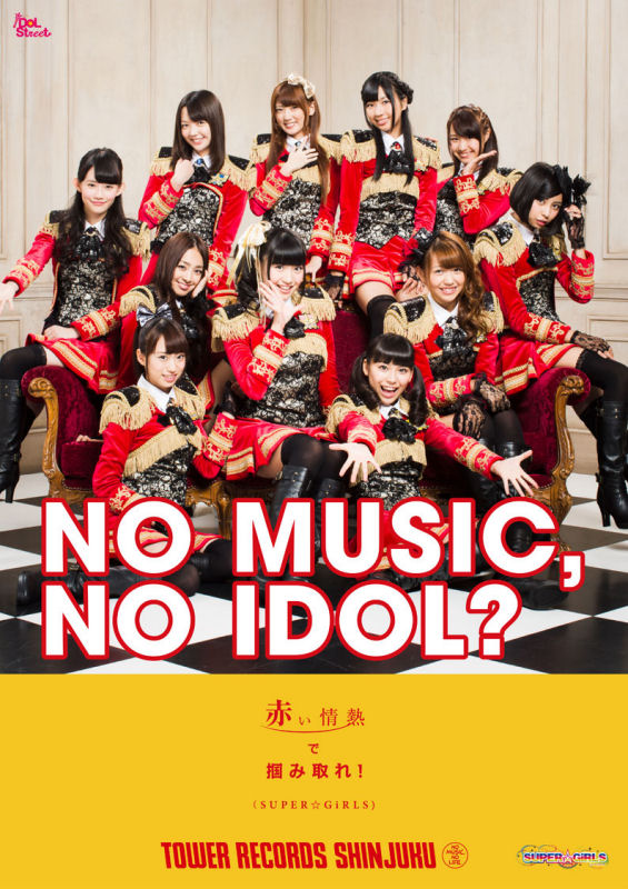10月9日、アイドルの聖地 タワーレコード新宿店のアイドル応援企画「NO MUSIC, NO IDOL?」のコラボポスター第21弾に、10月24日に6枚目のシングル「赤い情熱」をリリースする人気アイドルグループ SUPER☆GiRLSが起用されることがわかった。
