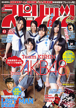 9月27日発売のスピリッツの表紙は、AKB48より篠山紀信氏と秋元康氏が選んだ次世代を担う6名(倉持明日香、前田亜美、大場美奈、島田晴香、竹内美宥、森杏奈)で結成したTeam KISHIN from AKB48が登場。