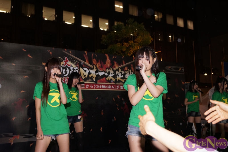 最後はトッピング☆ガールズGTとスープ☆ガールズの21人全員がステージに立ち「TSUKEMEN☆LOVE~大つけ麺博のテーマ~」を熱唱。