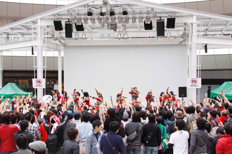 リーダーの八坂沙織さんは「初のラゾーナ川崎でのライブです! 広いですね!」と集まったファンに語ると、前島亜美さんは「赤い情熱、オリコンデイリーランキング1位ありがとうございます!」とファンに直接感謝の気持ちを伝えた。
