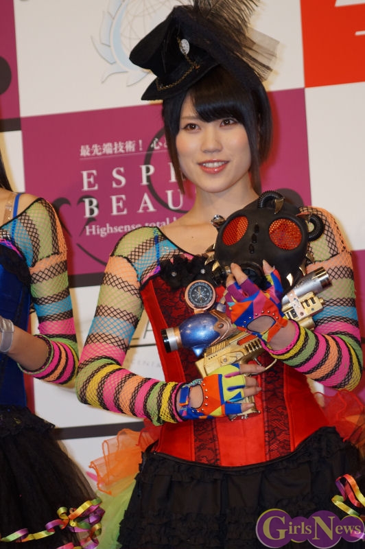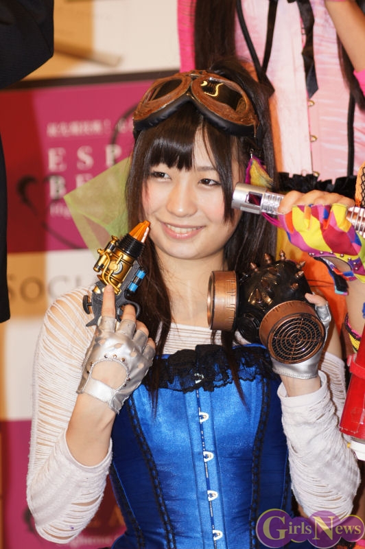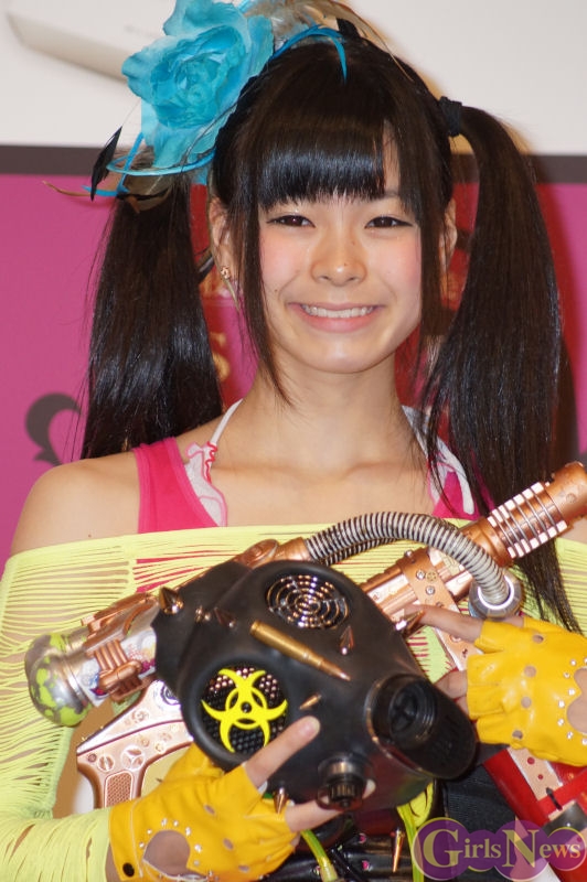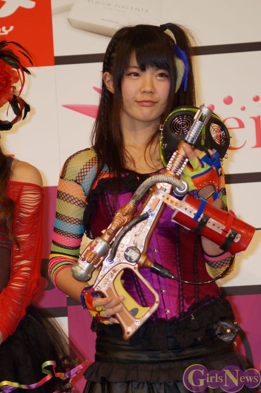 この日、ガスマスクに銃を持った姿の少女たちがステージにあがると、どよめきが走るなか、スチームガールズのメンバーは堂々とあいさつ。桜雪さんが現役の東大生であることが明かされると場内から驚きの声が聴かれた。