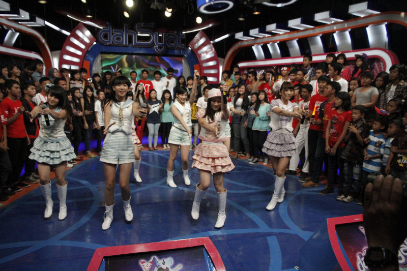 • インドネシア・RCTIの人気音楽番組「dahsyat(ダシャット)」に出演する JKT48 高城亜樹と仲川遥香 (C) JKT48 Project