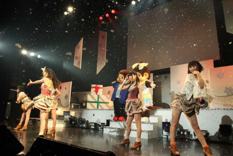 曲の途中にはPVやジャケット写真でコラボレーションしているキャラクター『モンチッチ』も登場しコラボレーション。さらに特殊効果で雪も降り、都心の初雪をメンバーとファンが一緒に体験。
