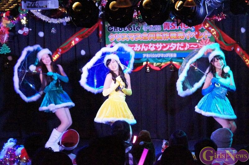 12月24日、ChocoLe&i☆Ris&青SHUN学園がクリスマス合同新作発売イベント「~みんなサンタだ♪~」ライブをアキバ☆ソフマップ1号店で開催した。