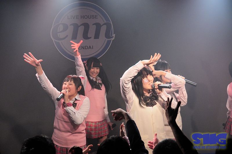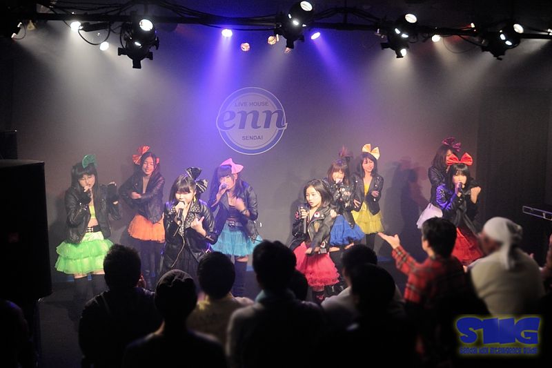 1月6日、【プチGirls-natioN~新年会しちゃいます~】限定100名LIVEが 仙台LIVE HOUSE enn 3rdで行われた、今春開催されるGirls-natioNの行方を占う会場はライブ始めを祝おうと集まった満員のファン達の熱気に包まれた。