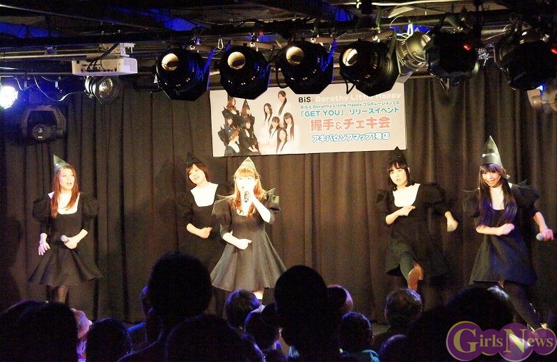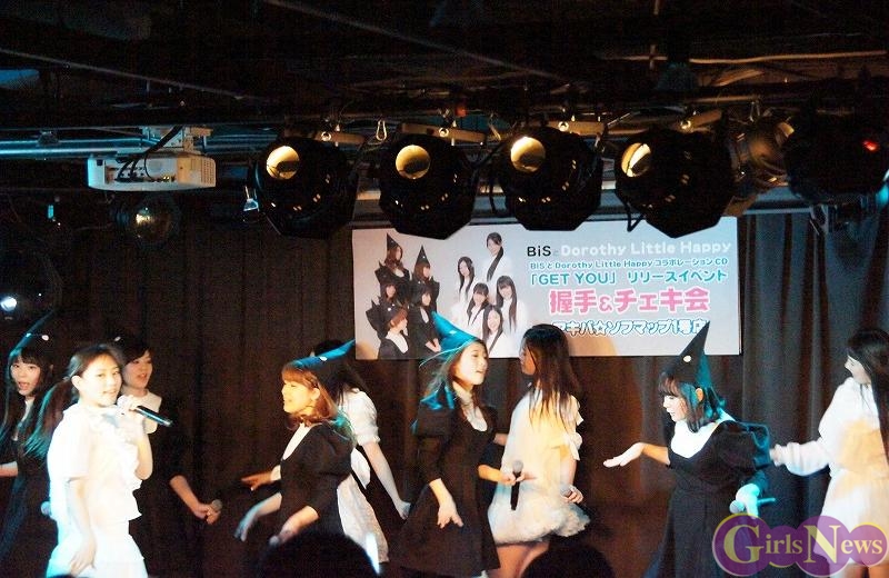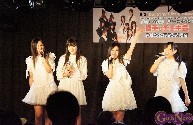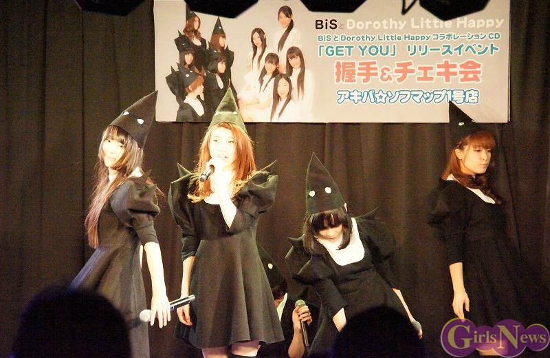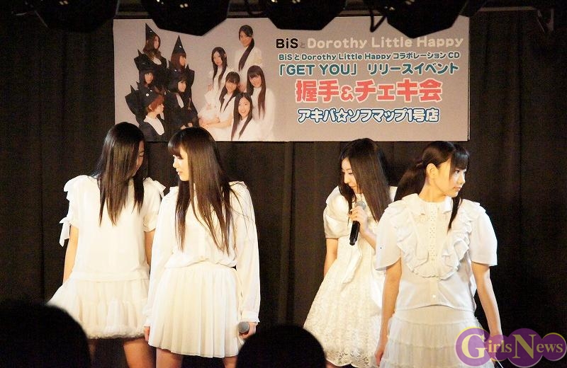 1月12日、秋葉原の中心で行われている『アキバ大好き祭り!』の一環としてBiSとDorothy Little Happyのコラボシングル「GET YOU」リリースイベントをアキバ☆ソフマップ1号店で行った。人気のユニット同士の合同イベントということで、会場は超満員になった。