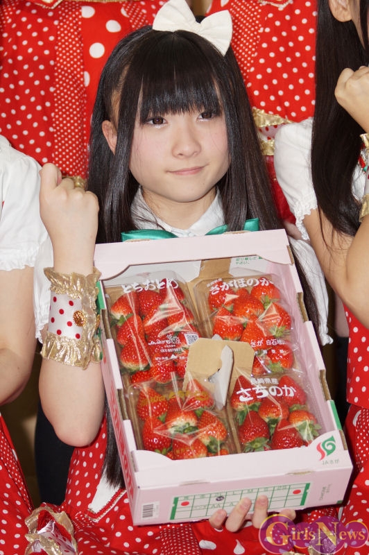 とちおとめ25のリーダー・あいさんはLinQの坂井朝香さんを呼び込むと、いちごPRを開始!