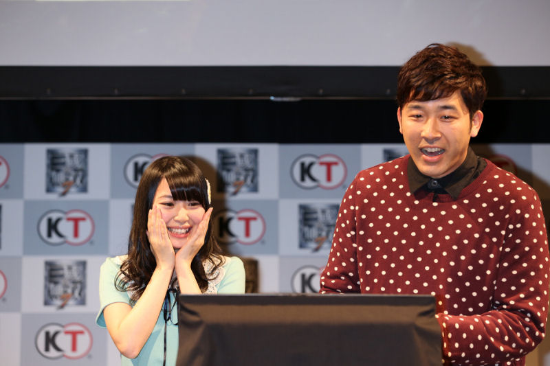 フォトセッションでは高柳明音さんの隣に布袋寅泰さんが立ち、いささか高柳明音さんは緊張気味ながらSKE48の二次元同好会代表としての任務を無事果たしました。