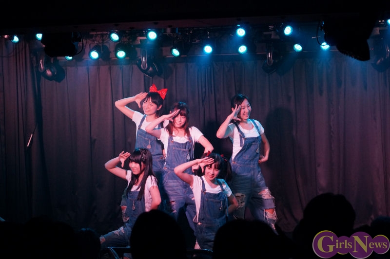 「ALLOVER(オールオーバー)」ということで、Tシャツに“オーバーオール”の衣装でライブを行いアイドル戦国時代を席巻している。