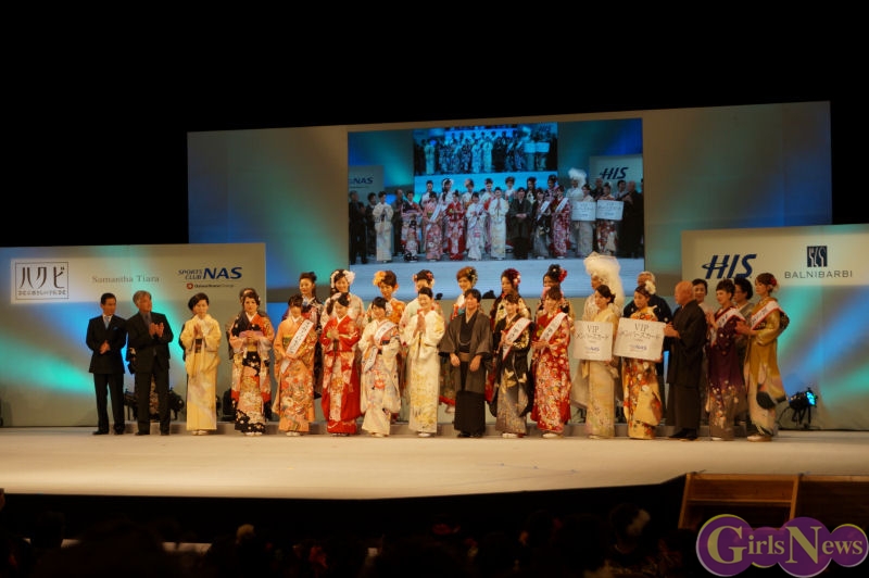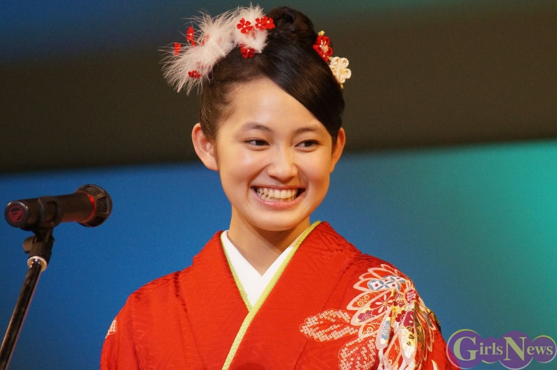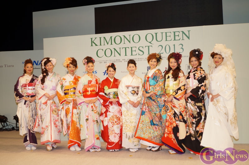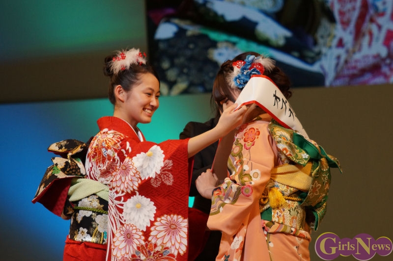 X21のリーダー 吉本実憂が「きものクイーンコンテスト2013」で艶やかな赤い振袖姿を披露&クイーンは臼井千晶さんに栄冠