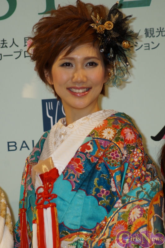 リーダーの中村さくらさんは「今日はこのような素敵な舞台に立たせていただいて本当に光栄に思います。」とコメント。尾花貴絵さんは振袖を着た感想として「とても品のある色合いがとても気に入ってます。今日はこの場に立たせていただくことができてとても嬉しいです。」と感想を語っていた。