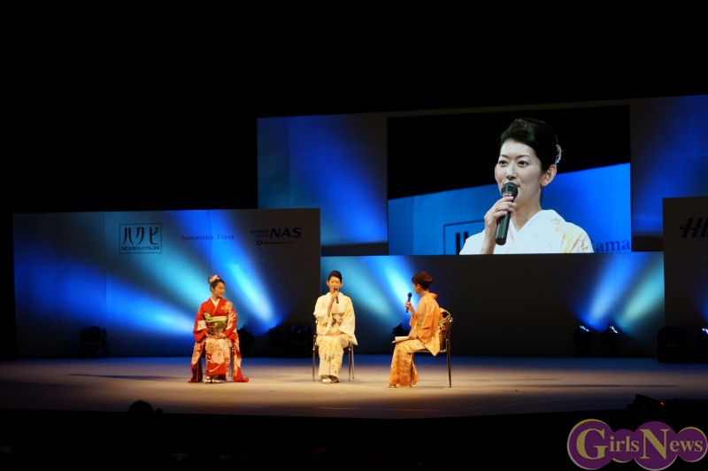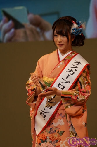 そして、きものクイーンコンテスト2013は総勢5715名の応募者の中から選ばれた約500名が審査に参加。きものの着こなしやウォーキング・表情などから総合的に審査され、きものクイーン2013には神奈川県在住の臼井千晶さん、準クイーンには栃木県在住の手塚梨加さんと千葉県在住の星野玲奈さん。オスカープロモーション賞には東京都在住の鎌田夢乃さんが選ばれました。