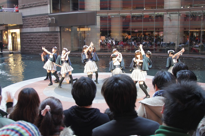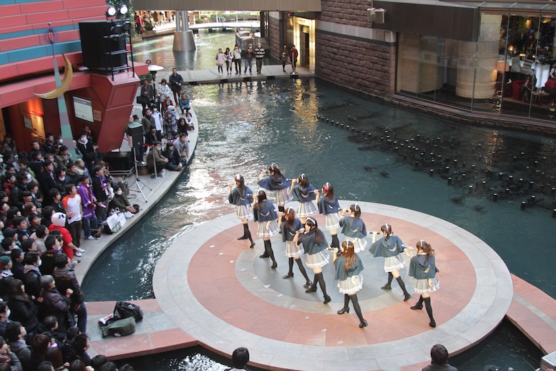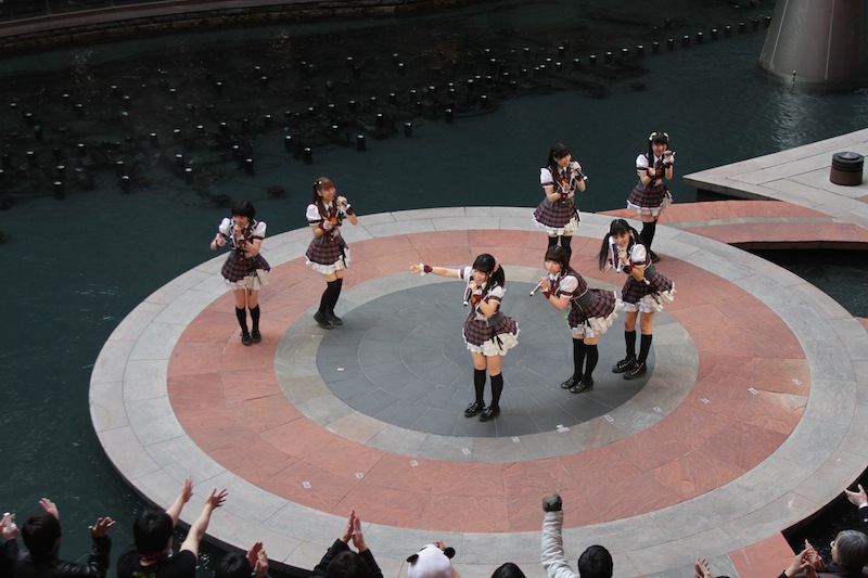 2月23日、アフィリア・サーガとバクステ外神田一丁目の2グループが福岡のキャナルシティ博多にてフリーライブを行った。