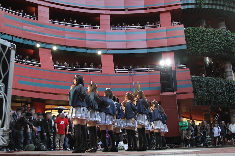 ライブが始まるに連れ、2階・3階にも東京からやってきた2グループのライブを見ようとアイドルファンが集結。多くの観客が見守る中ライブがスタートした。