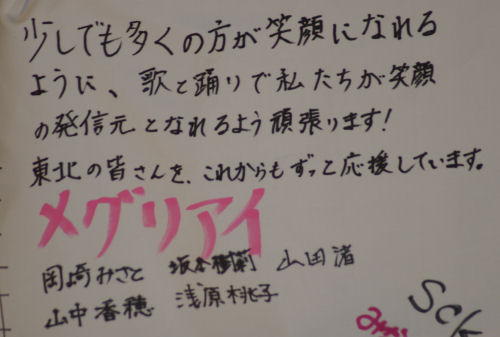 3月10日、「東北復興支援チャリティーライブ がんばれニッポン がんばるアイドル~」と題したチャリティライブが吉祥寺CLUB SEATAにて行われ、宮城・気仙沼のご当地アイドル SCK GIRLSのほか、S★UTHERN CROSS(鹿児島)・ 青SHUN学園(福岡)・WHY@DOLL(北海道)・MAGIC(高知)・ステーション♪(東京)・BELLRING少女ハート(東京)・メグリアイ(東京)・多国籍軍(東京)・佐藤あずさ など多数のライブアイドルが集結した。