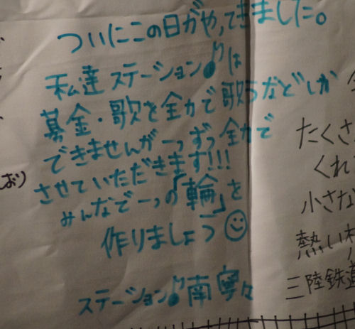 この日のライブでは集まったアイドルたちが書き込んだ応援フラッグを作成。