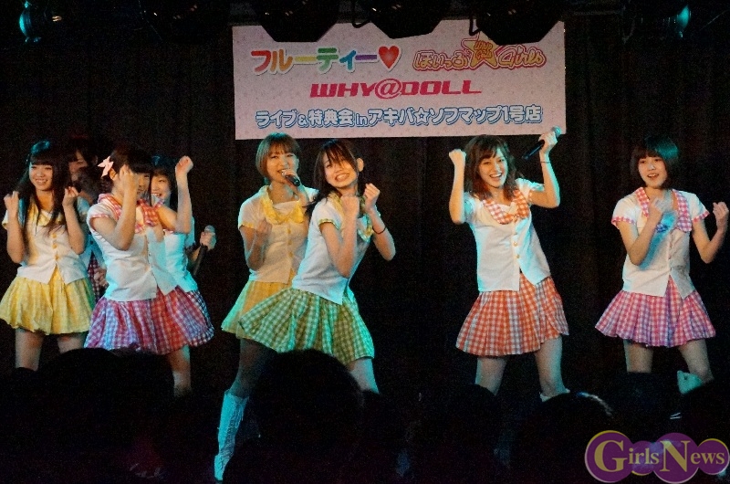 3月23日、北海道を拠点とするアイドルユニット『WHY@DOLL』『フルーティー』『ほいっぷ★Girls』の3組がアキバ☆ソフマップ1号店で合同ライブを行った。