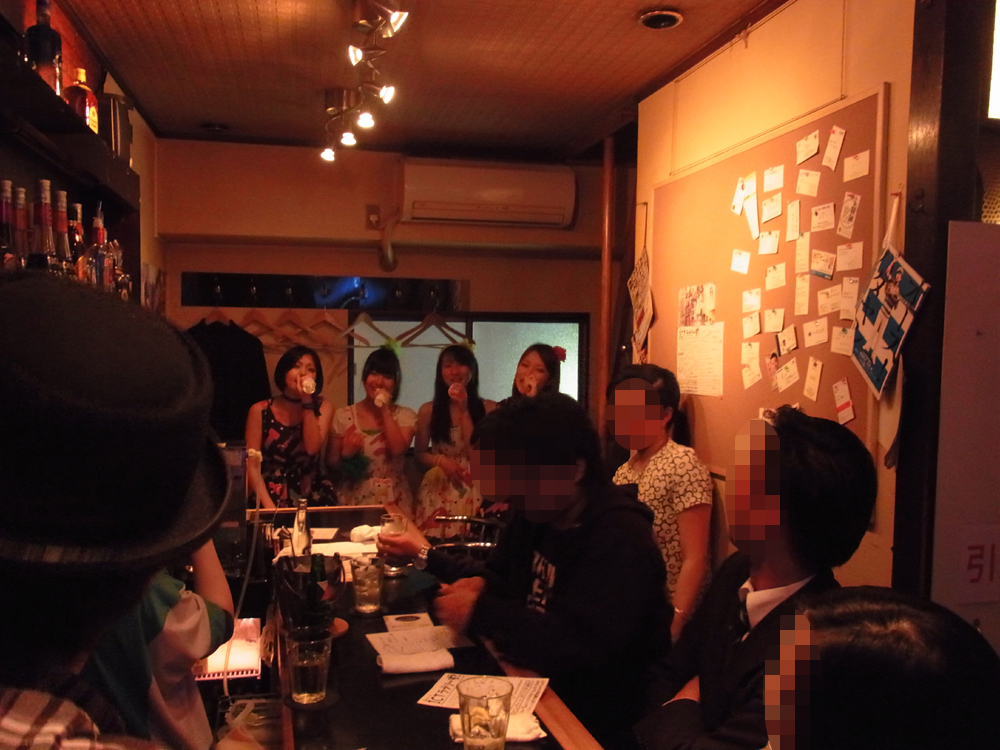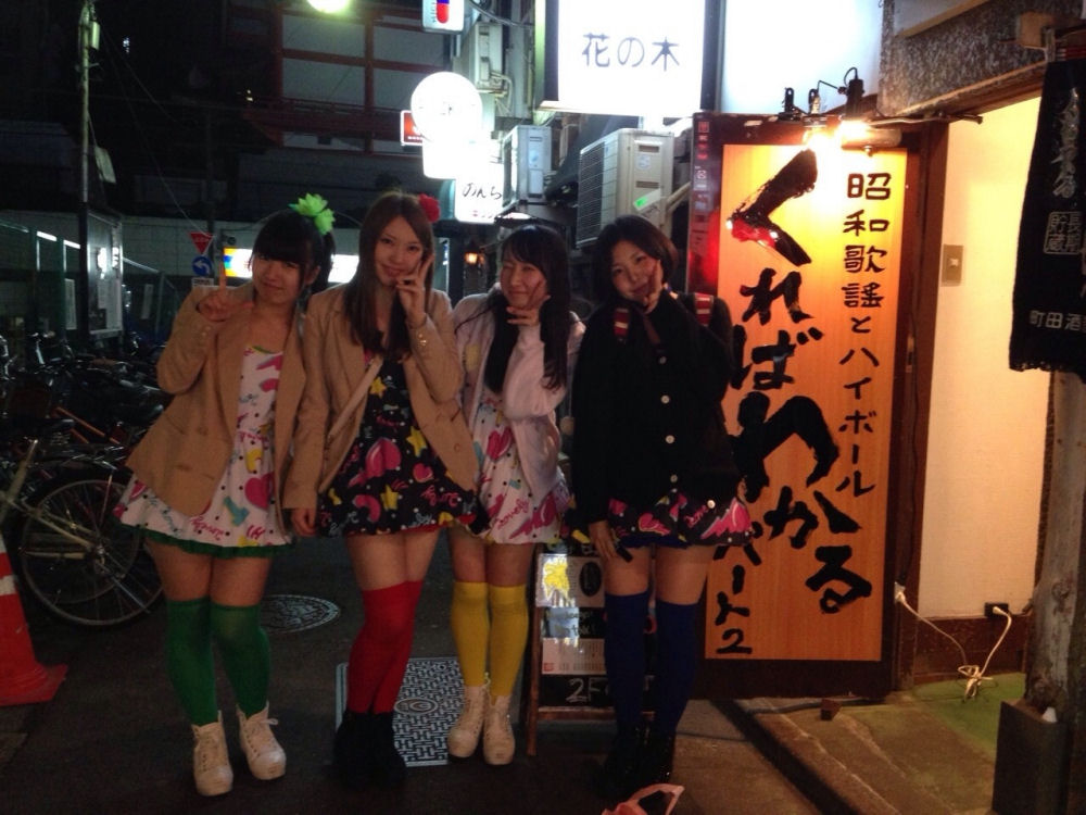 メンバーの4人(佐々木璃花は未成年の為、不参加)は、ゴールデン街にそぐわないノースリーブワンピースの最新衣装で、マイクの代わりにおしぼりを片手に新曲を歌い上げ、お客さんに声をかけながら、セールストークやフライヤー配布に勤しんだ。