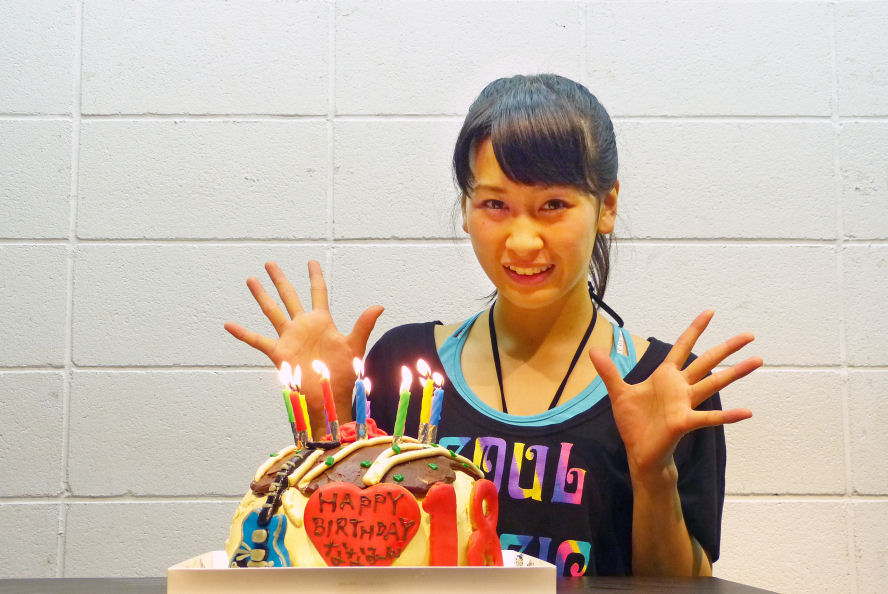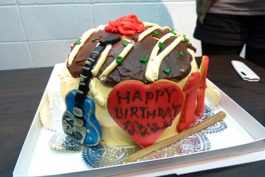 宇宙初エアギターアイドル・テレパシー 名倉七海の生誕祭を巨大たこ焼きケーキで祝福!