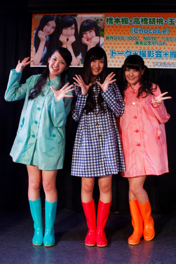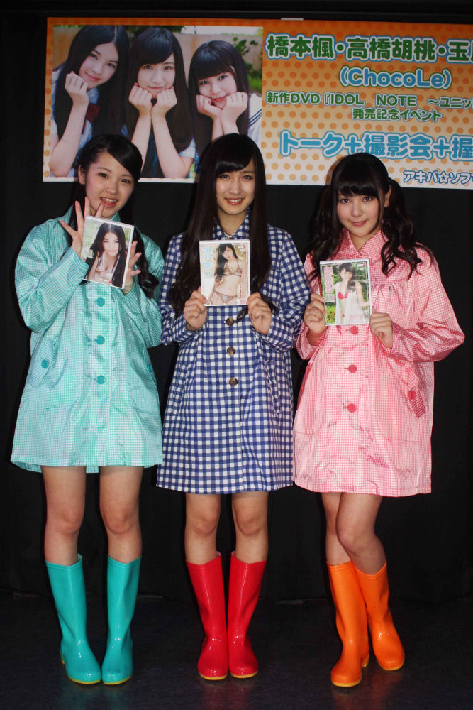 ChocoLe 橋本楓・高橋胡桃・玉川来夢がレインスタイルで最新DVDをPR