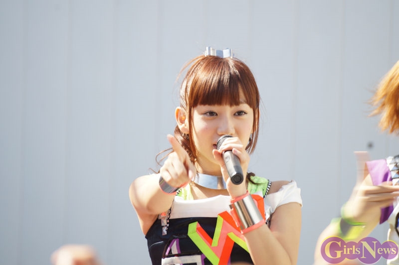 自己紹介の後、古川小夏さんが「私たちアプガはこの夏に賭けているんです!気合があるんです!どのアイドルにも負けません!」と気合を入れて、7月24日発売のダブルA面シングルから新曲「アップアップタイフーン」がスタート。