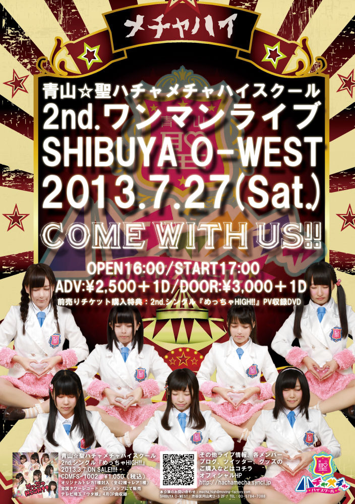 7人組アイドルグループ『青山☆聖ハチャメチャハイスクール(通称メチャハイ)』の2nd.ワンマンライブが今週7/27(土)に渋谷O-WESTで開催されます。
