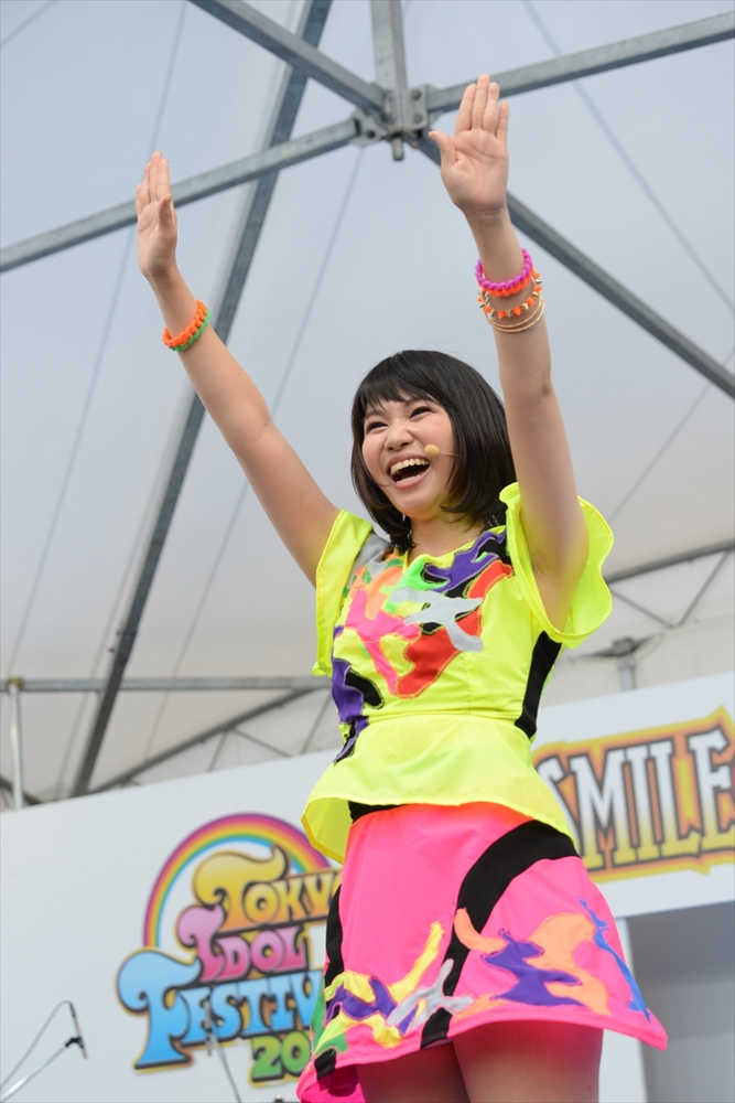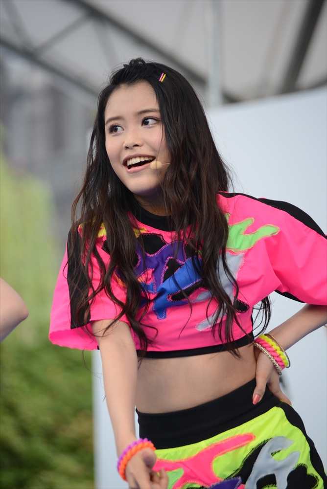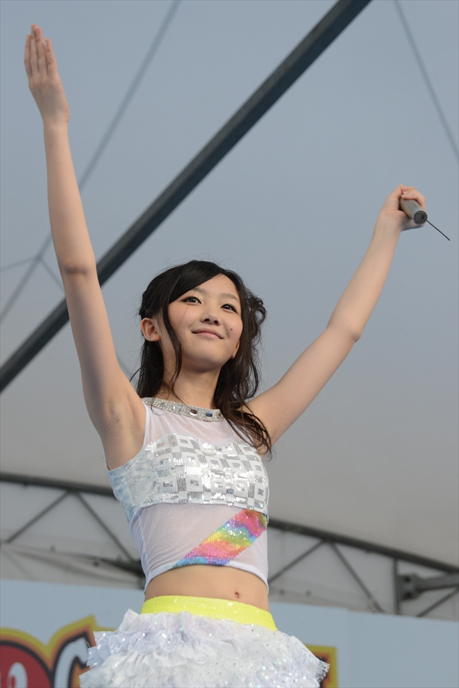 野外の会場を埋め尽くすほど集まった観客は、10人の可愛いパフォーマンスに大盛り上がり。「おんなじキモチ」では、メンバーと一緒に振りを踊り、「困惑コンフューズ」ではタオルを振り回し、夏の暑さに増して、熱気に包まれたステージとなった。