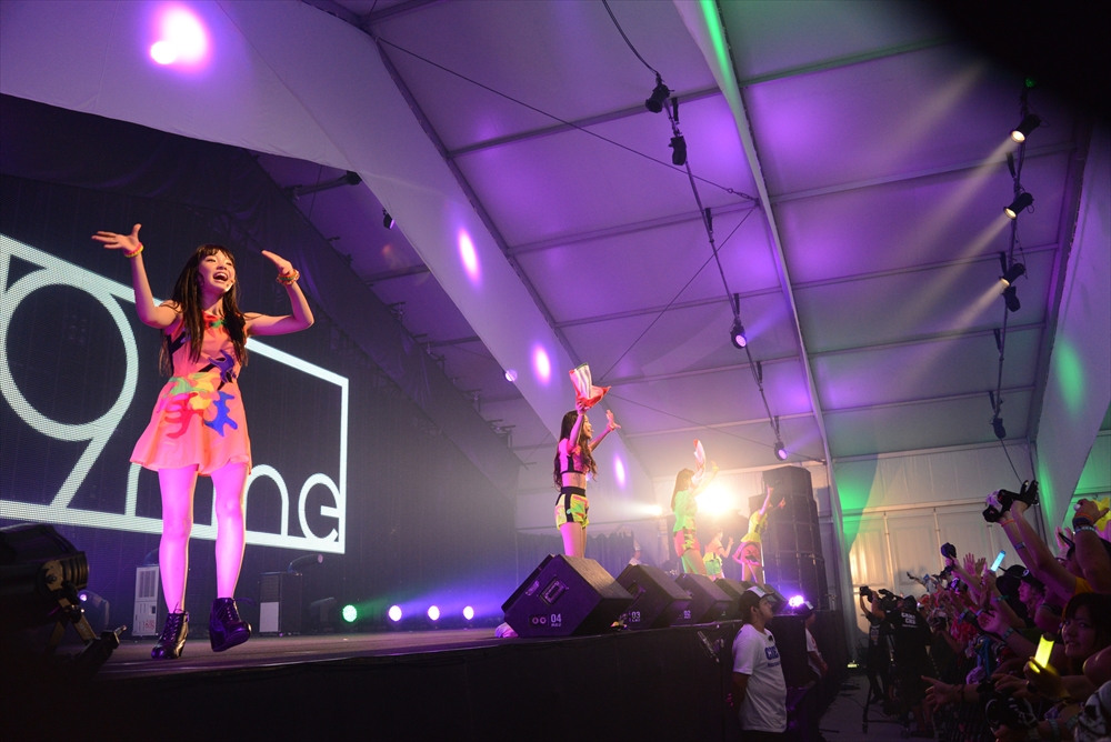 そして、アイドルらしい笑顔の輝きも、9nineの魅力の1つ。”あの夢のロッキンジャパンに出演している”という幸福感を噛みしめているからか、この日はいつもに増して表情豊かで、顔だけでなく、全身からオーラが発せられていた。今回、アウェーな場であるにもかかわらず、正統派パフォーマンスで空気を作り上げ、持っていった9nineは、パフォーマーとして本物といえるだろう。