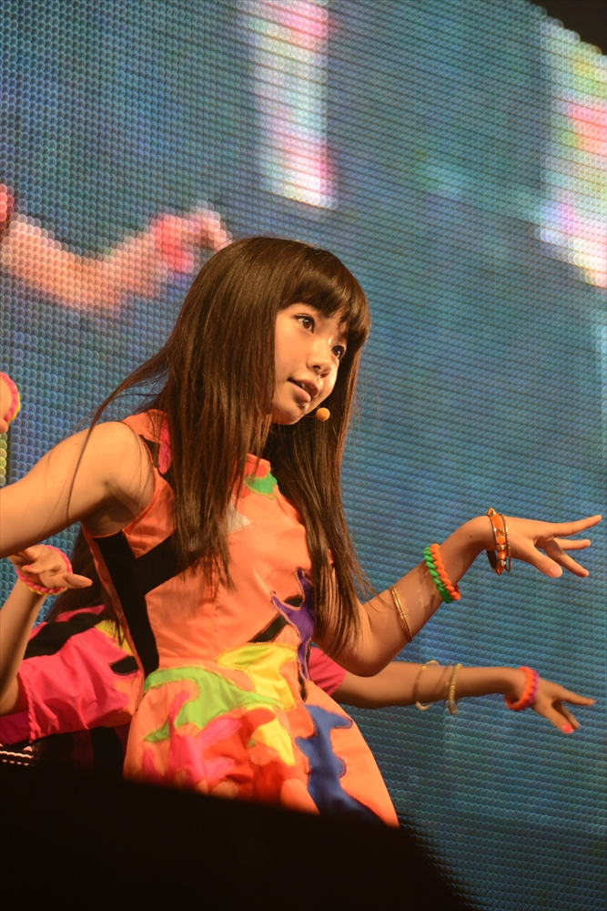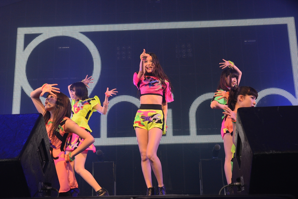 8月2日、3日、4日の3日間行われた『ROCK IN JAPAN FES. 2013』最終日。夕方16:15、まだまだ陽が落ちないひたちなか。夏を感じさせるカラフルな衣装に身を包み、リズムに乗ったクラップで登場すると、まずはオープニングダンスを披露。可愛い見た目とは裏腹なクールなダンスに、観客は一気に釘付けに。