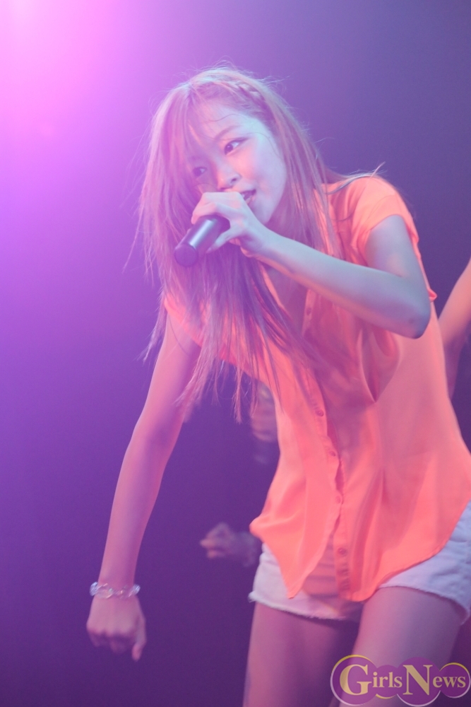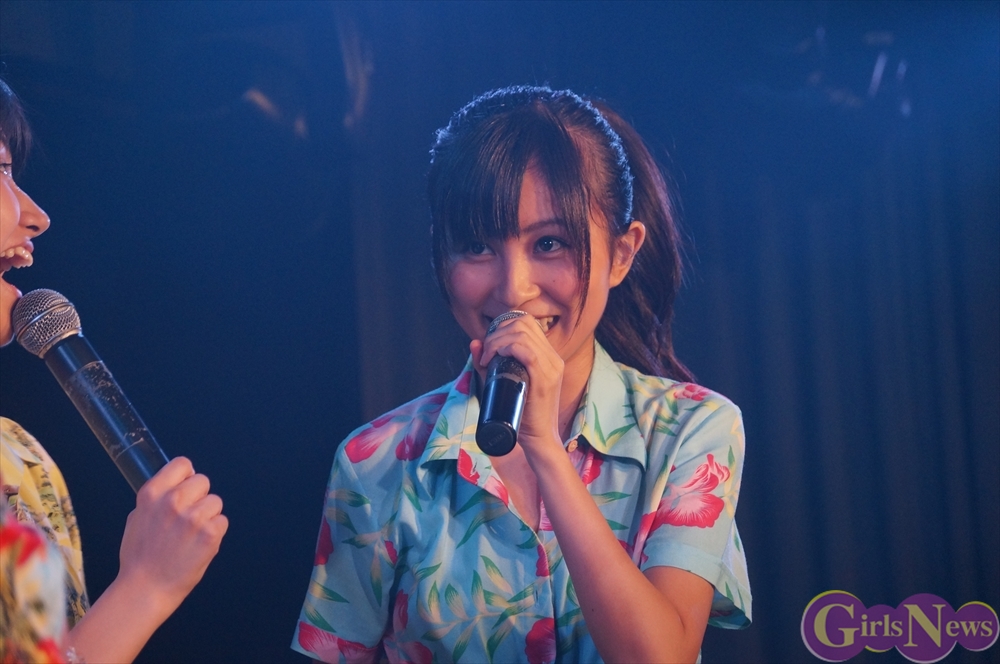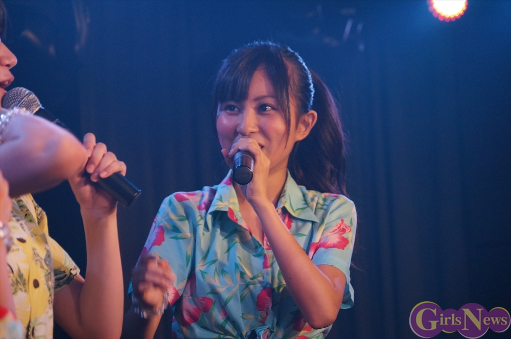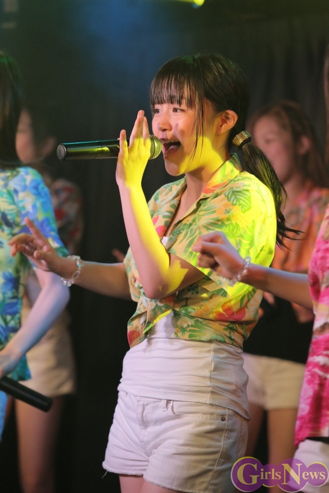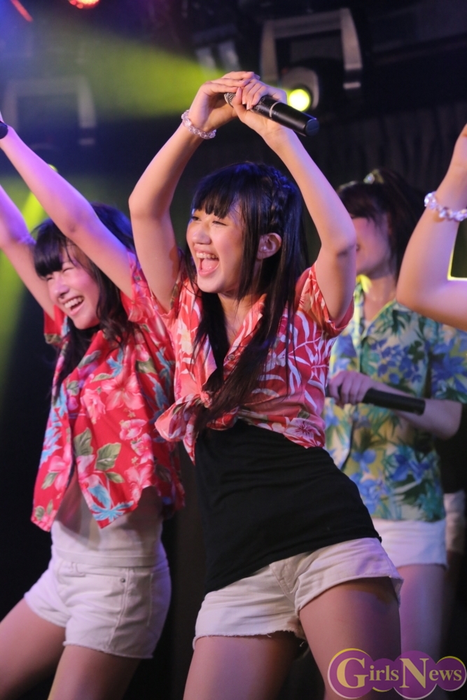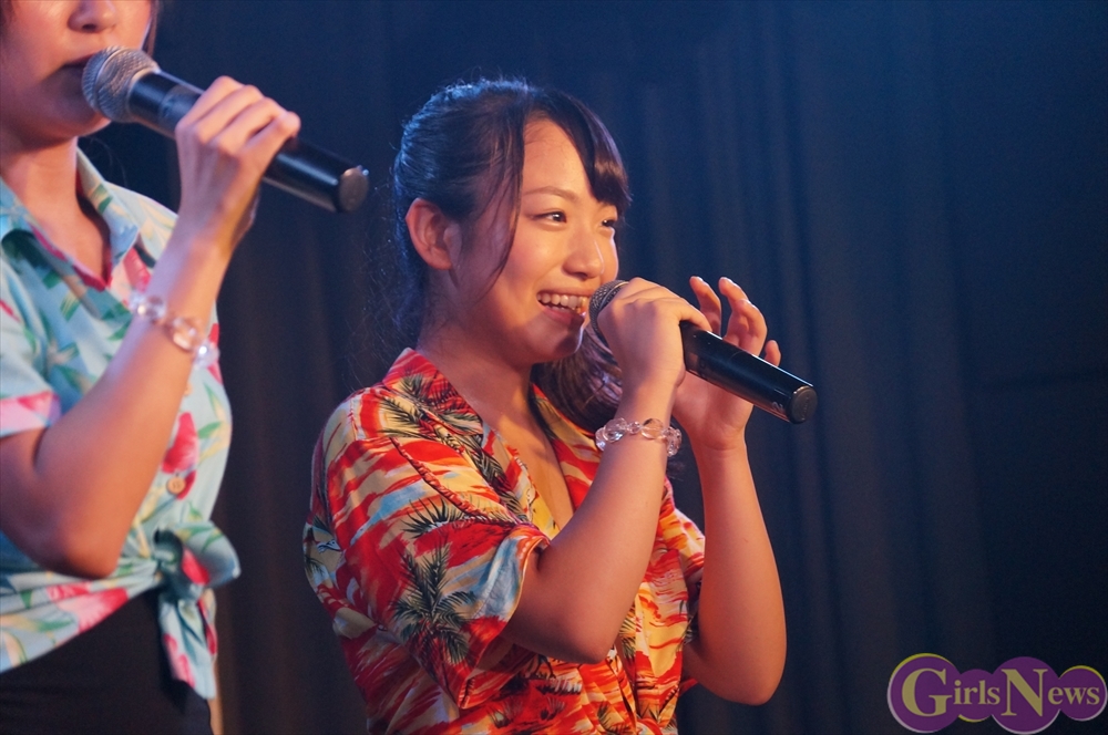 トロピカルな衣装にチェンジすると、小栗かこさんは「皆さんMAX!盛り上がれますか?」とファンを盛り上げ、SUPER☆GiRLSの2ndシングル「MAX!乙女心」をGEMのメンバーで披露した。