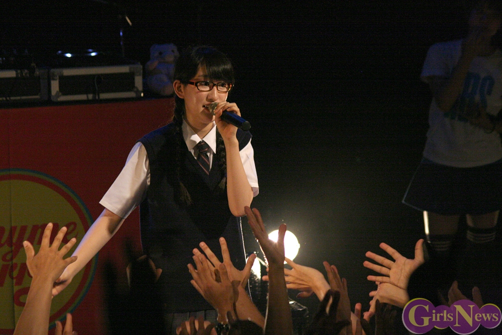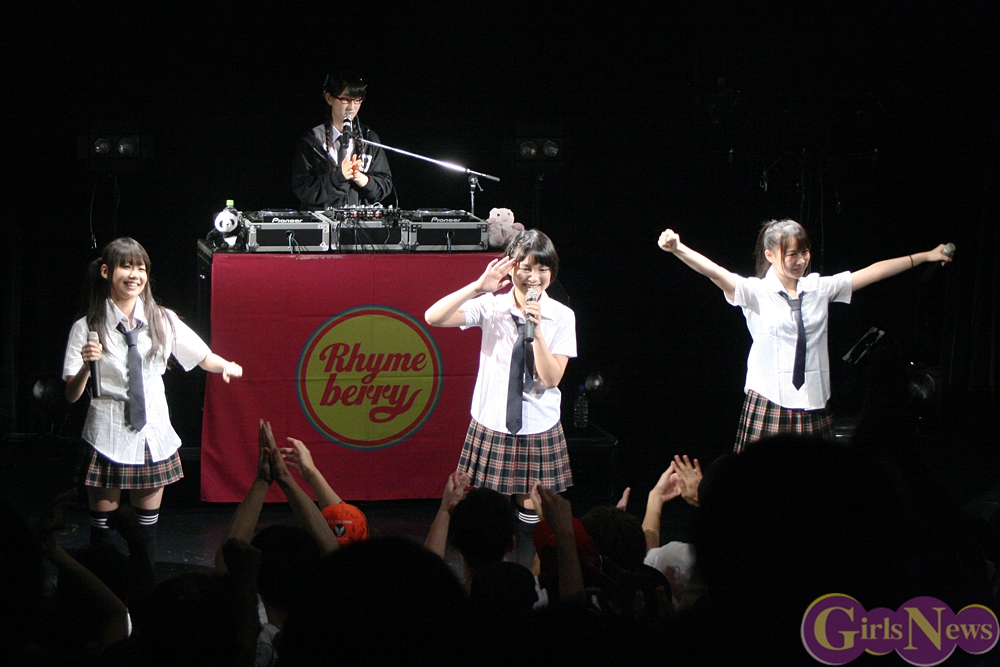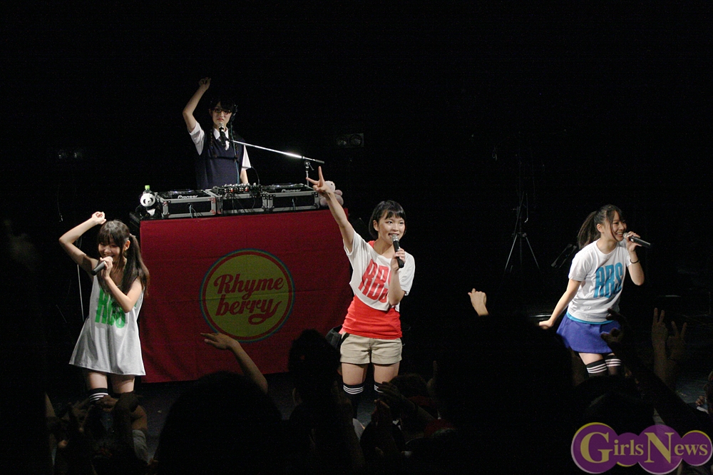 更に『RHYMEBERRY IZ NO.1』の披露後、最初のMCではワンマン前夜の心境を吐露した。夜遅くまでメンバー全員でLINEでやり取りをしていたらしく、皆緊張で寝つくことができなかった中、ただ1人YUKAだけは「結構寝てしまった…」と相変わらずのマイペースぶり見せ、会場を笑いに包んだ。
