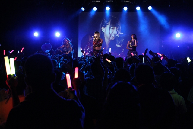 MCやファンが驚く中、現れたのはSUPER☆GiRLSの志村理佳、渡邉ひかる、溝手るか。溝手るかのソロ曲「My dream」と3人のユニット曲「EXIT」の2曲を披露。圧倒的な歌唱力とダンスパフォーマンスで会場を魅了した。
