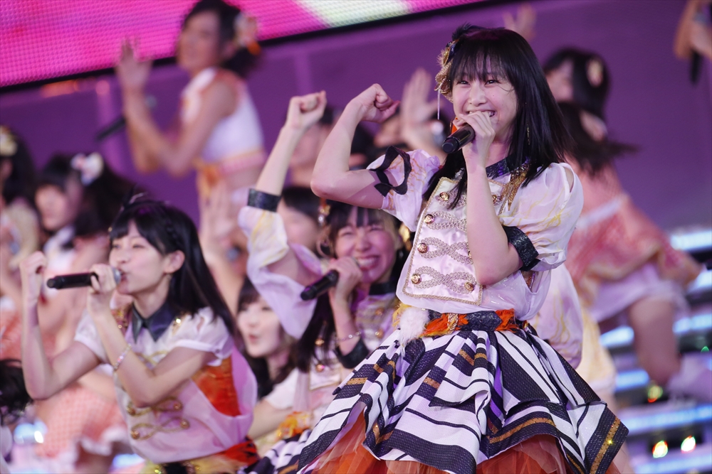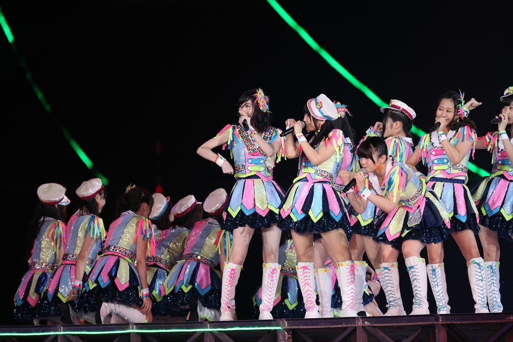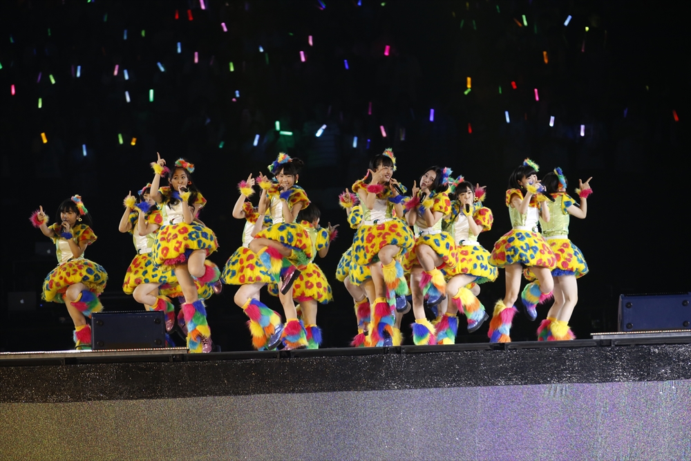 また終盤には、SKE48オールメンバー69名で「オキドキ」「パレオはエメラルド」を続けてパフォーマンスし、グループの看板として掲げる激しいダンスを見せつけ、会場中に響く声援に応えました。