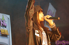 続いて登場したのは静岡県富士宮市を拠点とする3776(みななろ)。3776とは、富士山の標高3776mから取った名前だ。富士山の青空をイメージさせる爽やかなスカイブルーの衣装を纏い、全4曲を歌った。キュートなメロディーが印象的な「分かってよねえ先生」や、ロックチューンの「大噴火はいかが」、富士山にちなんだ新曲「コケモモ」と「やっぱり君はそうさバッチリさ」のラインナップで、彼女たちの守備範囲の広さをしっかりとアピールした。6月に世界遺産に登録され、注目度がさらに上がっている富士山。そんな「師匠」にあやかって、今後3776の名前を聞く機会はますます増えそうだ。