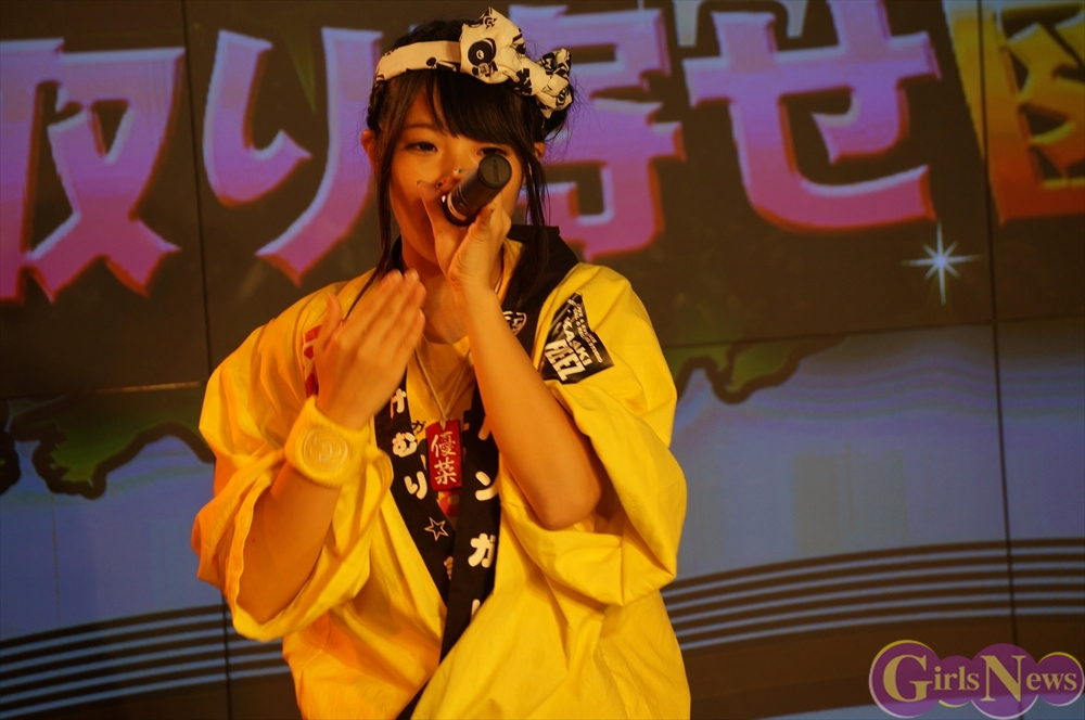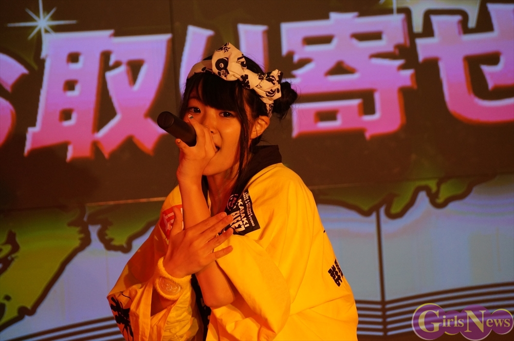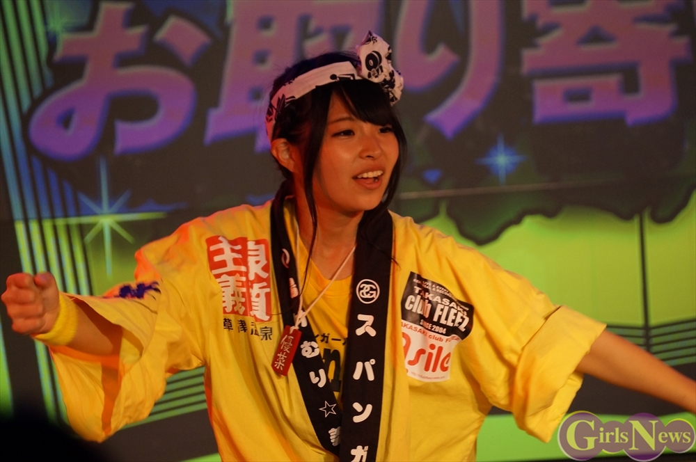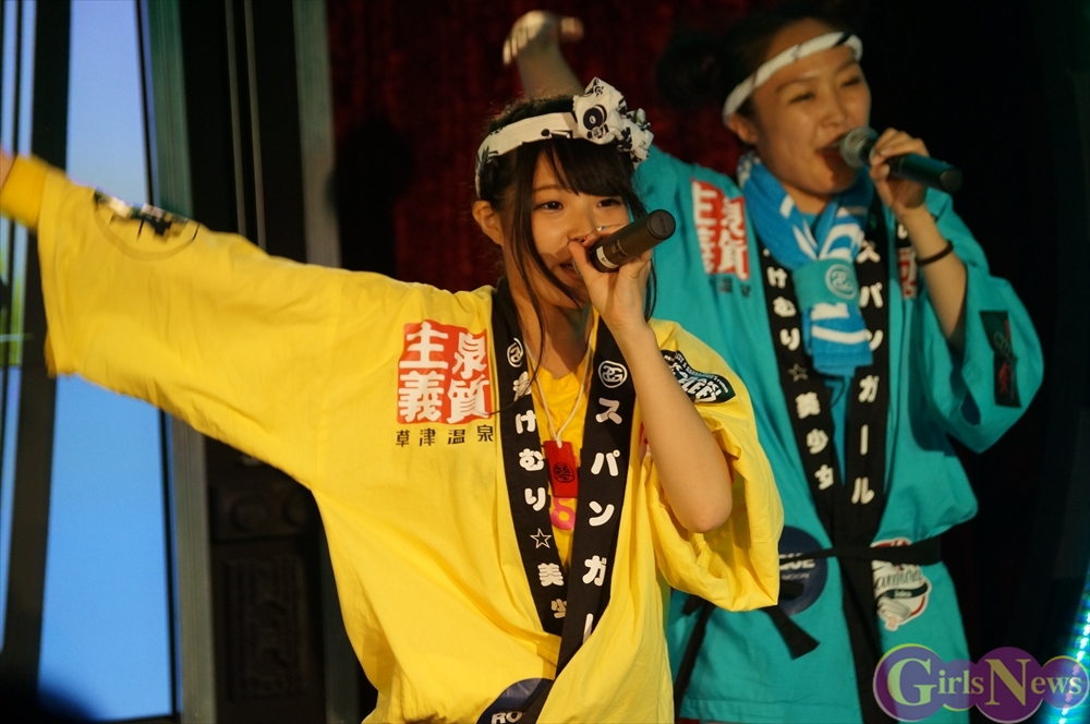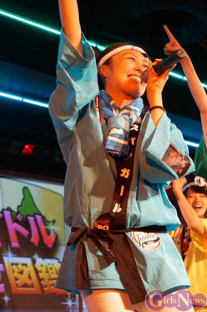 4組目の登場は群馬県からやってきたSpangirl。ご当地アイドルの中には、地元をアピールするグループと活動の拠点を地方に置いたグループの二つがあるが、Spangirlは前者のお手本と言えるようなグループだ。衣装は群馬・草津温泉の湯もみを思わせる、法被とねじり鉢巻き、そして地下足袋。一曲目の「上州GO!!~地元群馬なんとも意外な裏話~」では群馬の名物や豆知識を次から次へと繰り出し、続く「湯けむり少女」では草津・伊香保・水上などを擁し全国屈指の湯どころである群馬を耳に残るメロディーでしっかりアピールした。もちろん、ダンスや歌にも一見の価値あり。彼女たちのステージを見れば、Spangirl、そして群馬のファンになること請け合いだ。