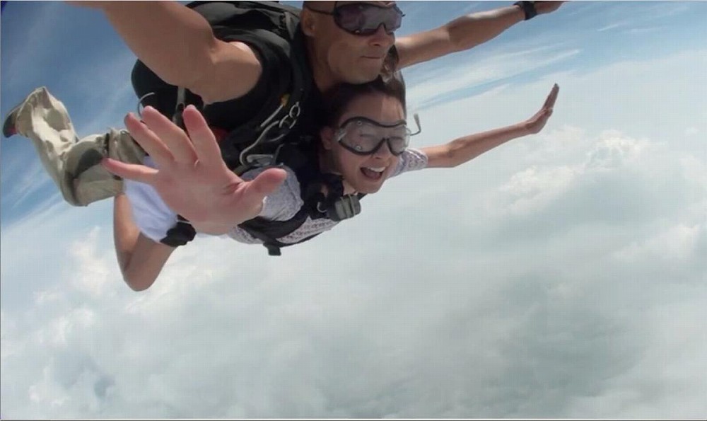 特に見所は、メンバーの秋山ゆりかが飛ぶまでの過程。極度の高所恐怖症である彼女は、現地に着くや否や恐怖からずっと無言となり、ヘリコプターに乗ると目から大粒の涙がボロボロとこぼれ出す。そして、怯えながらも決死の覚悟で見事にダイブ。ダイビング後、秋山は「怖くて怖くてしょうがなくて、飛ぶ直前まで何度も母に帰りたい帰りたいと電話していました(笑)。いざ飛んでみたら上空4000メートルからの風景は最高でした。でも、もう二度とやりたくはないですね」と語った。