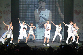 AAAはイベント開始後、アーティストとしてはトップバッターで登場。「PARTY IT UP」でクールなダンスナンバーを見せつけ観客を魅了する。その後「Sorry, I…」「Love Is In The Air」「777~We can sing a song!~」と夏にぴったりなアガリ曲4曲を披露し会場を盛り上げた。その後、初体験となる司会の水沢アリー、そして同司会のお笑い芸人ロバートと共にトークを展開。「僕と秋山さん似てません?」(西島)などと親しみのあるトークで会場を沸かせた。最後は前述のこのイベント独特の撮影タイムで会場を埋め尽くす約1000人の観客の携帯カメラ(主に)の被写体となって、その後彼女たちのブログのネタとなっていった。