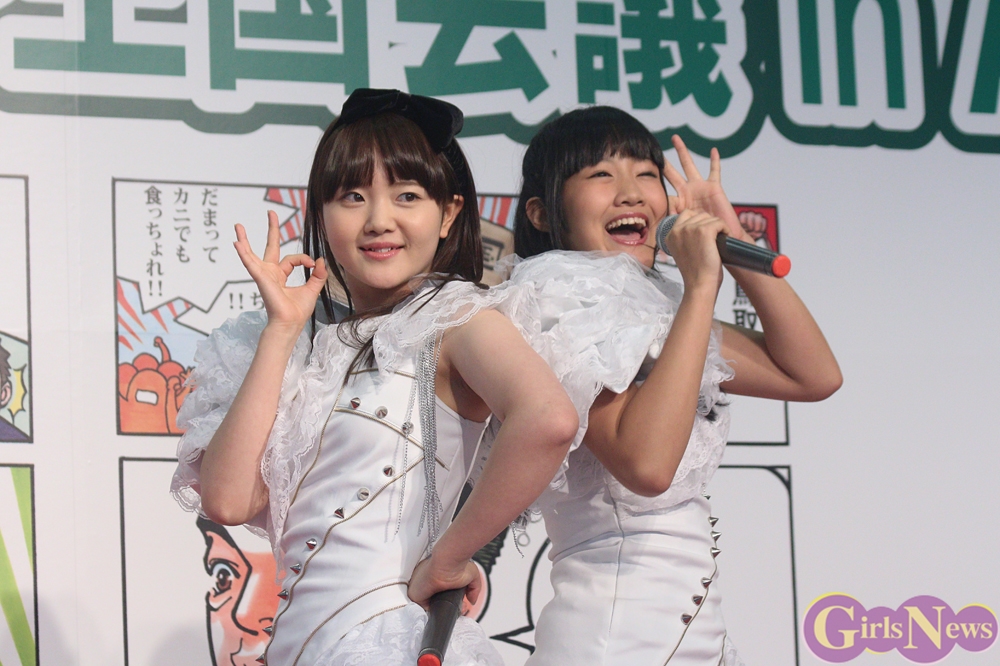 “はちきんガールズ”は、高知県観光特使であり、海洋堂イメージガールや『あまちゃん』公式サポーターなど、全国へ向けての活動も盛んなガールズユニット。この日は、高知の特産物の生姜をテーマにしたヒーローソング風の『カラダノミカタ・ジンジャー』や、鳴子を打ち鳴らし、よさこいを彷彿とさせる力強い曲『日本列島夢前線』などを披露した。いつもながらの全力のステージは観客を魅了し、会場を大いに盛り上げた。