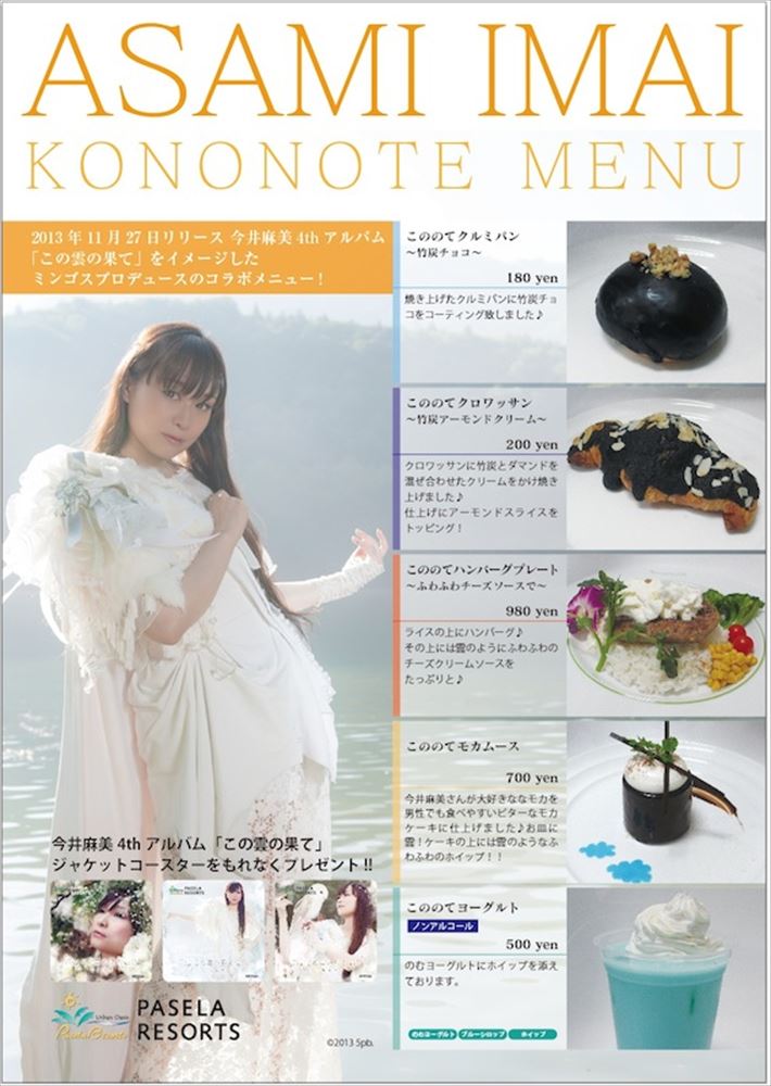 ミンゴスカフェでは、本人のイメージをもとにしたオリジナルメニューの提供や店内装飾、等身大POPの展示、店内BGMなどで今井麻美の4thアルバム『この雲の果て』気分を、存分に満喫できる。