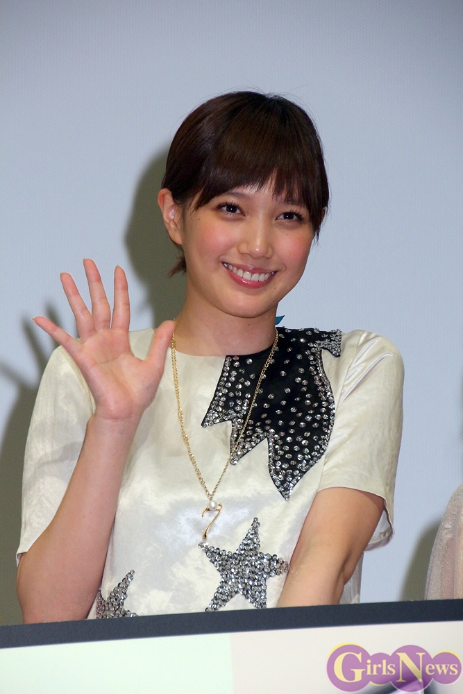 銀色の星をあしらったキラキラした衣装で登場した本田翼さんは「今回、声優に初挑戦だったのですが、七役に挑戦させていただきました。」と笑顔で挨拶した。