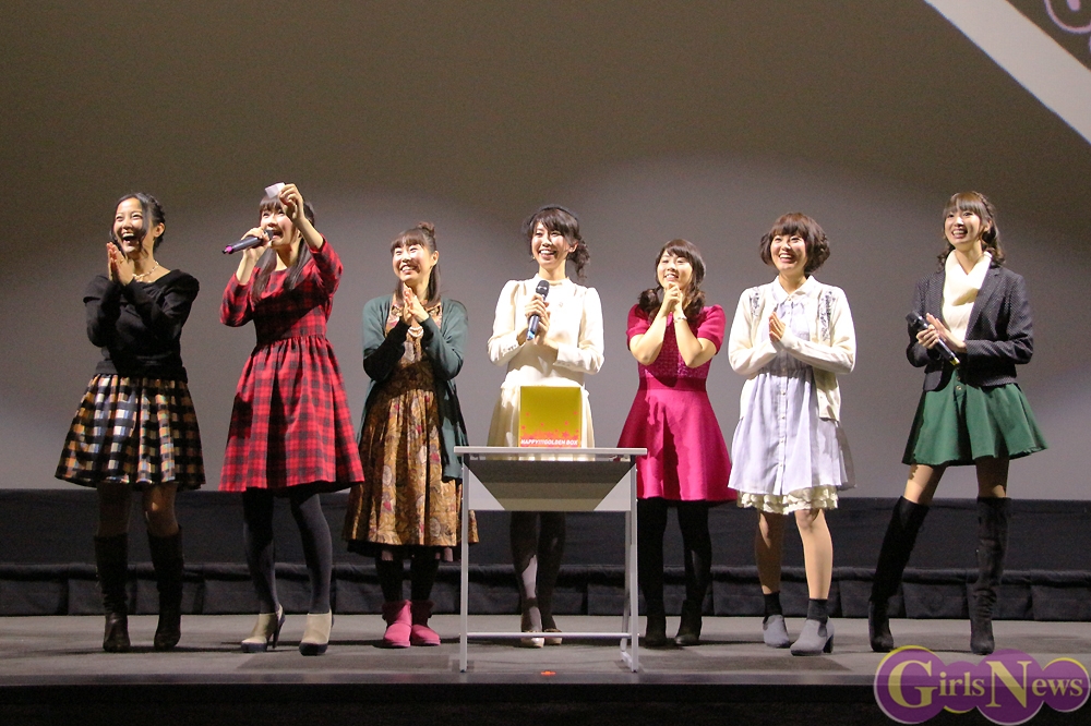 舞台挨拶には、月野うさぎ役の三石琴乃、水野亜美役の金元寿子、火野レイ役の佐藤利奈、木野まこと役の小清水亜美、愛野美奈子役の伊藤静に続き、第2期から新たに登場するちびうさ役の福圓美里、セーラープルート役の前田愛が登壇してトークショーが行なわれた。