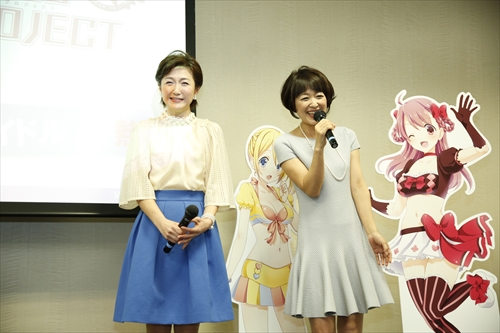 生稲晃子さんは「私は芸能生活29年になるのですが、声を入れさせていくというのは初めてなんです。初体験で未知の世界なので、いろいろ教えていただきながらゲームを台無しにしないように、素敵な声を出してみたいと思います。」、新田恵利さんは「声を入れるお仕事は初めてで、声を入れることに対しての不安はあるのですが、若々しい、でもレジェンドな素敵なアイドルを頑張りたいと思います。」と語っていた。