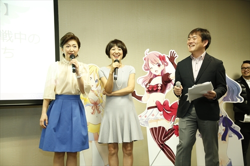 また、元おニャン子クラブの新田恵利さんと生稲晃子さんもこのゲームに声優として参加が決まり、この日 2人揃って登場。姫崎愛未さんは憧れのアイドルの先輩たちと一緒に発表会に出席し恐縮しきり。