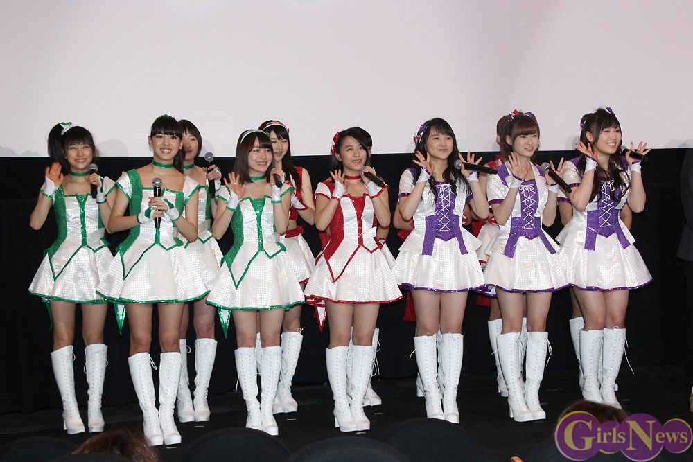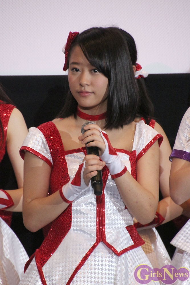 石田亜佑美さんは、「今回は主題歌だけでなく、私と飯窪春菜、小田さくらの三人でキャラクターをデザインさせていただきました。自分たちの描いたものが映像で動くのを見て感動しました。娘の晴れ姿を見る親御さんの気持ちがわかったような気がします。親バカかもしれませんけど、ものすごくかわいく感じました。」とアピールした。
