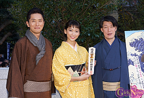 また、杏さんと松重豊さんは3度目の親子役ということで、杏さんは「松重さんとまた親子共演ができるということで、今回できあがりが本当に楽しみです。」と話すと、松重豊さんは「この声を入れる時に、ちょうど同じドラマをやっておりまして、“どうだった”とか“難しかった”とか“意外と楽しかった”とかそういう話をして盛り上がってました。僕の場合は葛飾北斎というビッグネームなんですけど、絵の中に生きてる人物に声で寄り添っていくという作業なんだなという風に思って、それは不思議な経験でしたけどすごく楽しかったですし、それを杏ちゃんと別のドラマをやりながらいろんな話をして共演できたのはすごく楽しかったですね。」と語っていた。