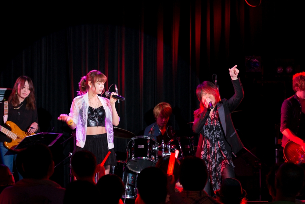 ここで、最初のゲストが登場。まずは、「プリキュアナンバー」を歌い紡いできた先輩シンガーである五條真由美がステージへ。「DANZEN!ふたりはプリキュア(Ver.Max Heart)」を唄ったあとは、シングルでコラボレートしたファンキーな「Lovin’ you featuring 五條真由美」を披露。池田彩と五條真由美が歌を掛け合いなから、胸をキュンとさせる乙女な片想いソングを甘く軽やかに歌いあげゆく様に、見てる方が恋気分だった。