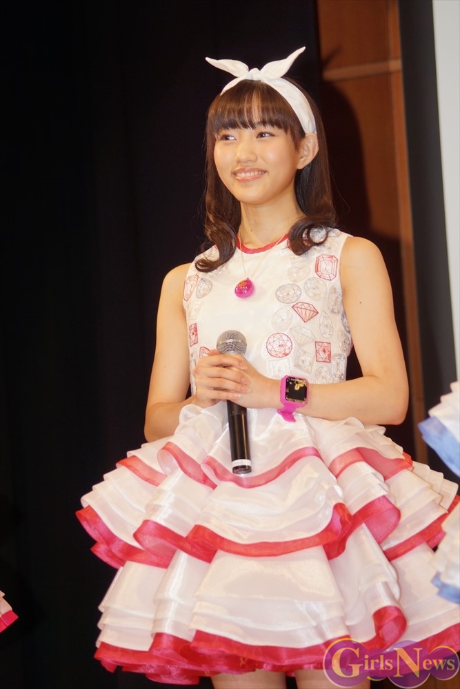 MARIさんは「私たち6人は普段はそれぞれのグループで活動していますが、今回『ジュエルペット マジカルチェンジ』のオープニングテーマを歌うために6人で結成されました。大好きなジュエルペットを私たち、“マジカル☆どりーみん”の歌とダンスで盛り上げていけるように頑張っていきますので応援よろしくお願いします。」と挨拶。
